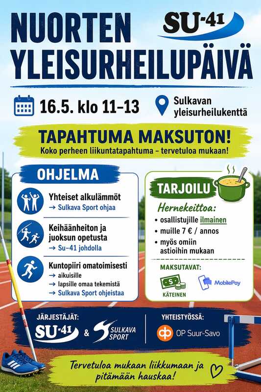 Nuorten yleisurheilupäivä urheilukentällä la 16.5. klo 11-13
